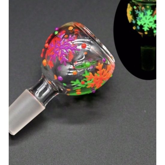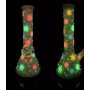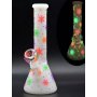 Этот прекрасный стеклянный стакан высотой 18 см украшен восхитительными узорами на трубке и чаше, выполненными в зеленом, оранжевом, фиолетовом и красном цветах. И трубка, и чаша светятся в темноте. Вес изделия составляет приблизительно 350 гр., высота – 18 см, а диаметр основания – 8,5 см.